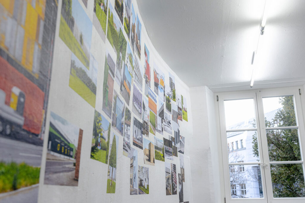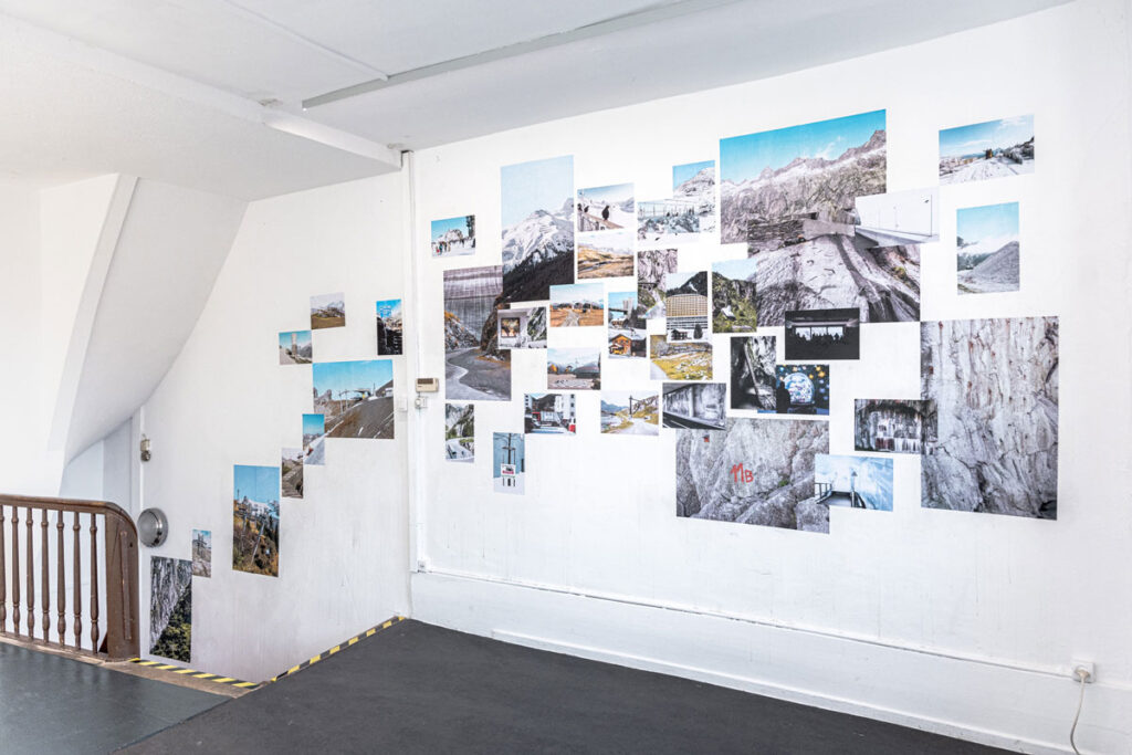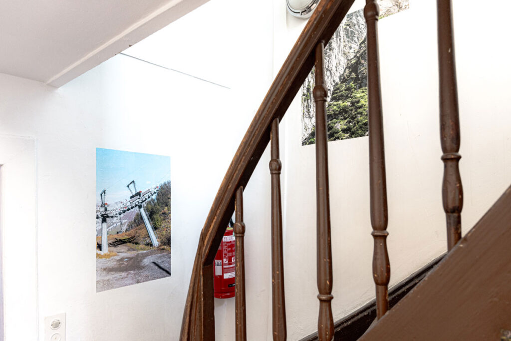 Nachfolgend gibt es noch ein paar Bilder aus der Ausstellung. Ich habe die Bilder direkt auf die Wand tapeziert um das Haus selbst in das Design aufzunehmen. Für mich war es ab dem ersten Moment, als ich die Räume des S11 gesehen hatte, klar, dass ich auf die schiefen und unregelmässigen Wände eingehen möchte. So entstand eine Art Plakatwand, statt grossen Fine-Art-Prints.
